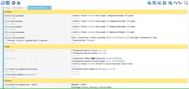 Now all the events are ready for shooting Enemies. You can add a comment on the top to classify these actions.